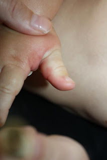 needless to say it was a rough morning for my big boy. After we had a snack and made him forget about his massively swollen thumb and sore leg, we went on a walk! Then right after we got back, Joshua got a hold of my keys and tried to "unlock" the outlet. Epic failure. He got a little jolt, and a BIG startle. Hopefully he won't be doing that again (who am I kidding, he tried to do it again 10 minutes later).